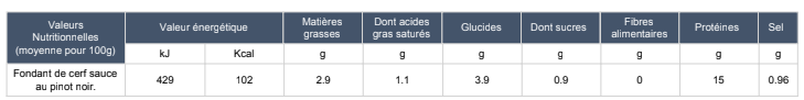• Fondant de cerf sauce pinot noir - 1,700 KG