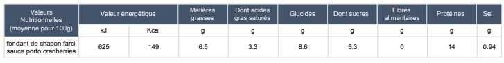Fondant de chapon farci, sauce porto et cranberries - 1,720 kg